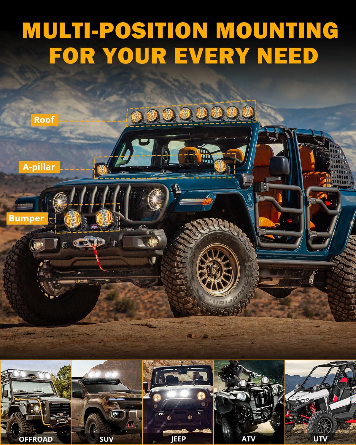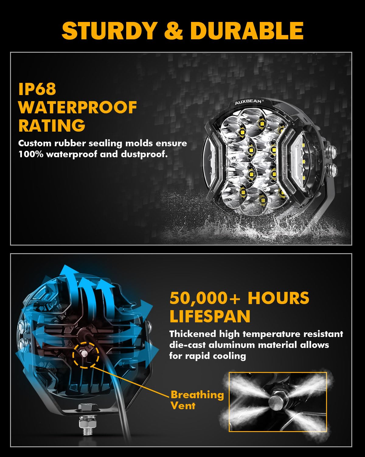 - 【IP68 TRIPLE WATERPROOF SOLUTION】We've continuously improved our waterproof system based on user feedback. Our LED driving light, with its 100% sealed design, can withstand submersion and harsh conditions without damage from rain, fog, moisture, or dust. Trust in our rigorous quality inspection for a product that truly lasts.