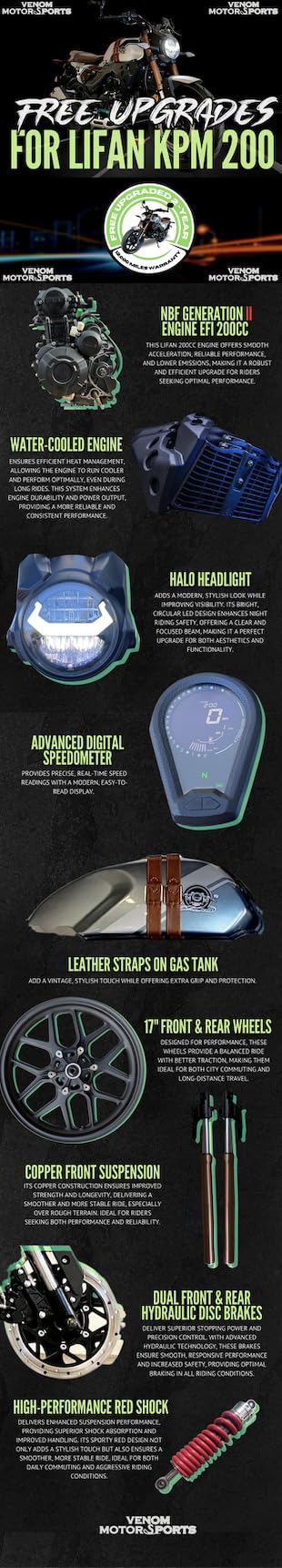 - 2-Year/12,000 Miles Warranty: Ride in peace knowing you are fully covered!